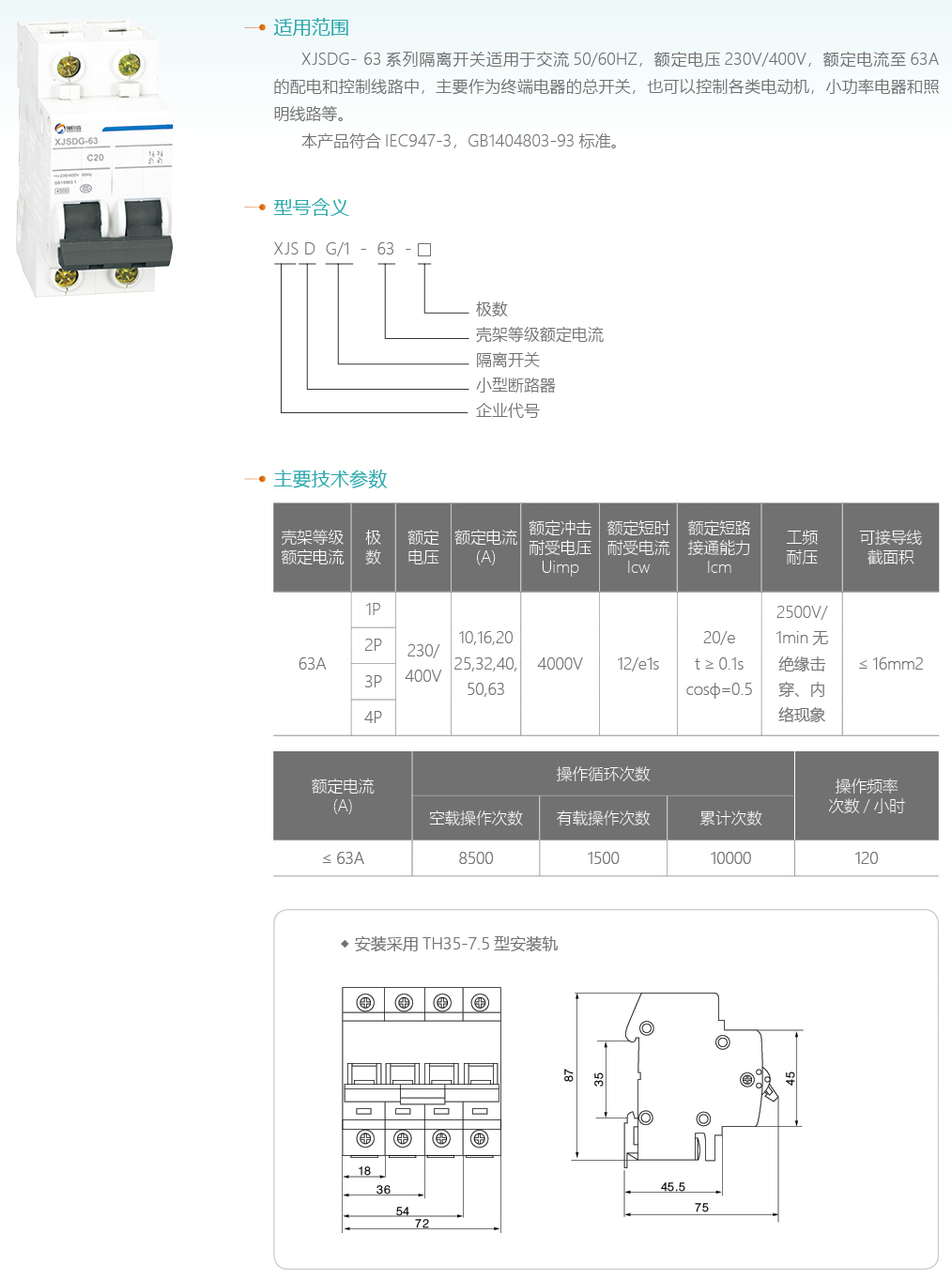 XJSDG-63系列隔離開關