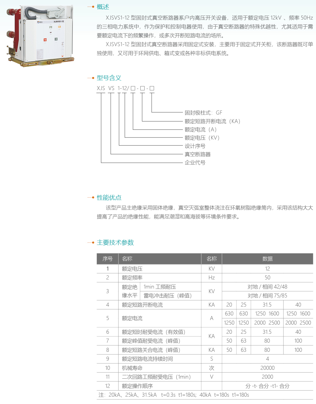 XJSVS1-12固封式戶內高壓真空斷路器
