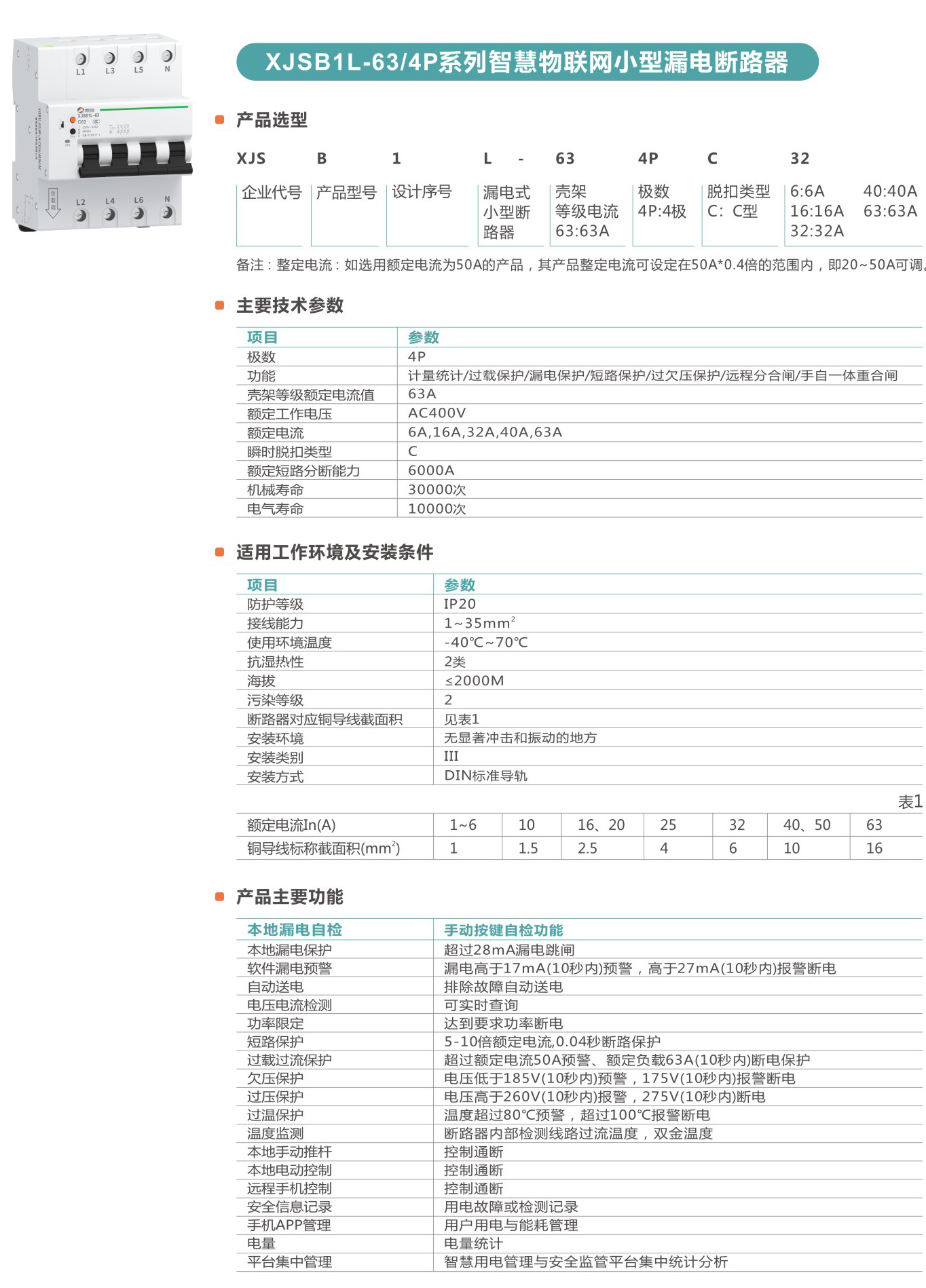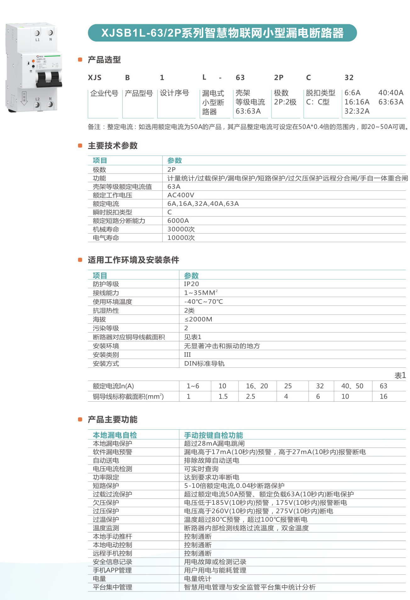 XJSB1L系列智慧物聯網小型漏電斷路器